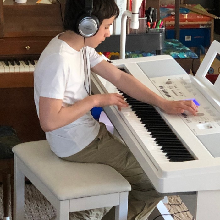 In our lessons, we’ll cover all the skills necessary to be a competent musician in this day and age. You’ll learn using a far more holistic approach. In addition to the traditional skill of reading written sheet music, you’ll also learn the many functional skills necessary to be a modern musician. These include reading lead sheets and chord charts, accompanying singers, jamming with others, composing, song writing, playing in a band or orchestra, freely playing soundscapes, learning to play a favorite song by ear, storytelling through music, and making music videos.